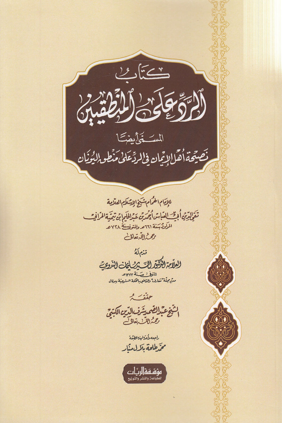 Er-Red Alal-Mantıkiyyin Nasihatu Ehlil-İman Fir-Red Ala Mantıkil-Yunan - الرد على المنطقيين نصيحة أهل الإيمان في الرد على منطق اليونان